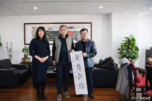 文化视界网报道 1月9日下午,著名画家、中国美协会员、解放军总参美术创作院艺术委员赵初凡一行走进文化视界。中华网山东&文化视界网董事长梁洪文热情接待了来访贵宾,邀请赵初凡在办公室落座,大家促膝共话、品茗相谈。